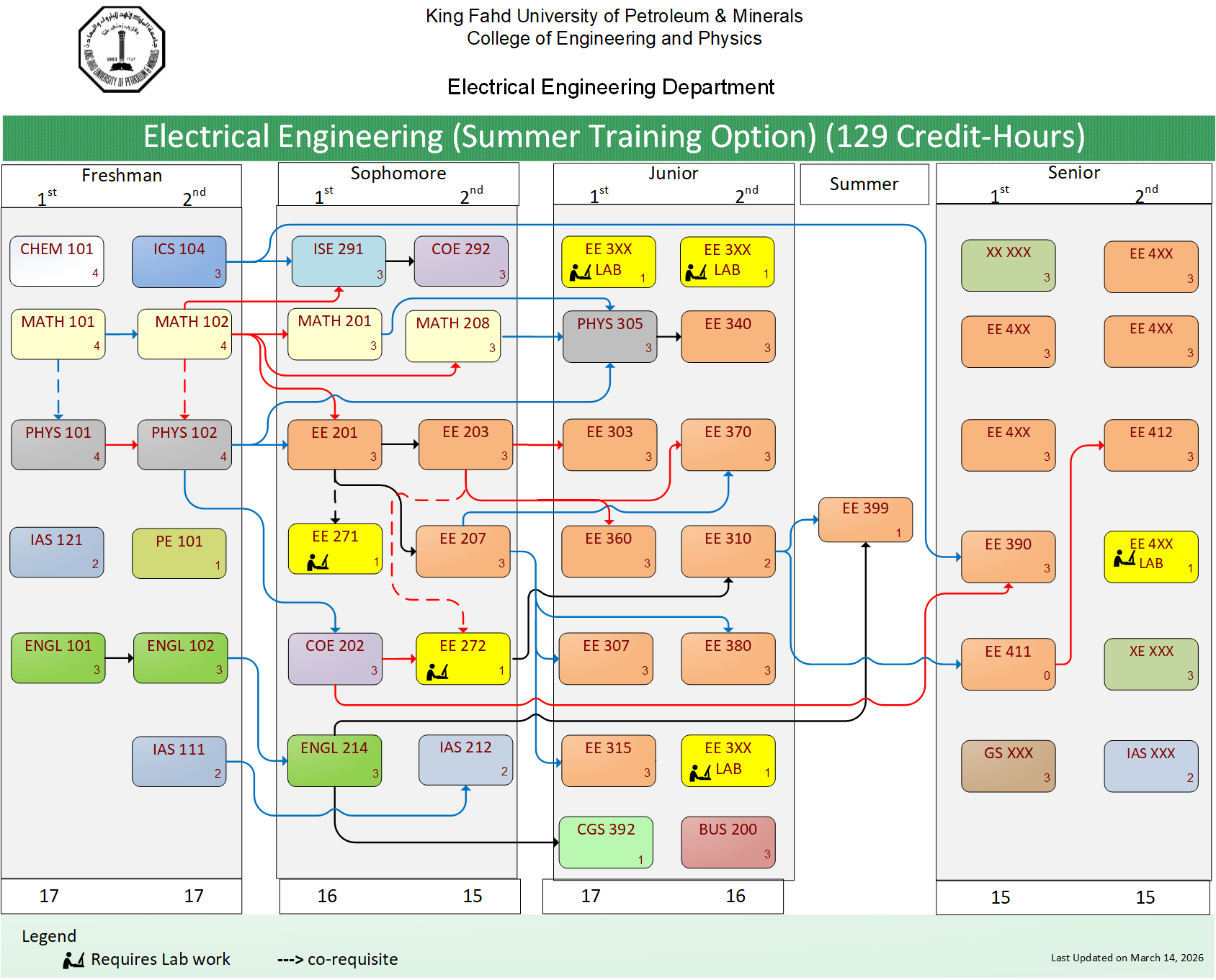 Every student majoring in Electrical Engineering (EE)-summer training option must complete the following curriculum:
