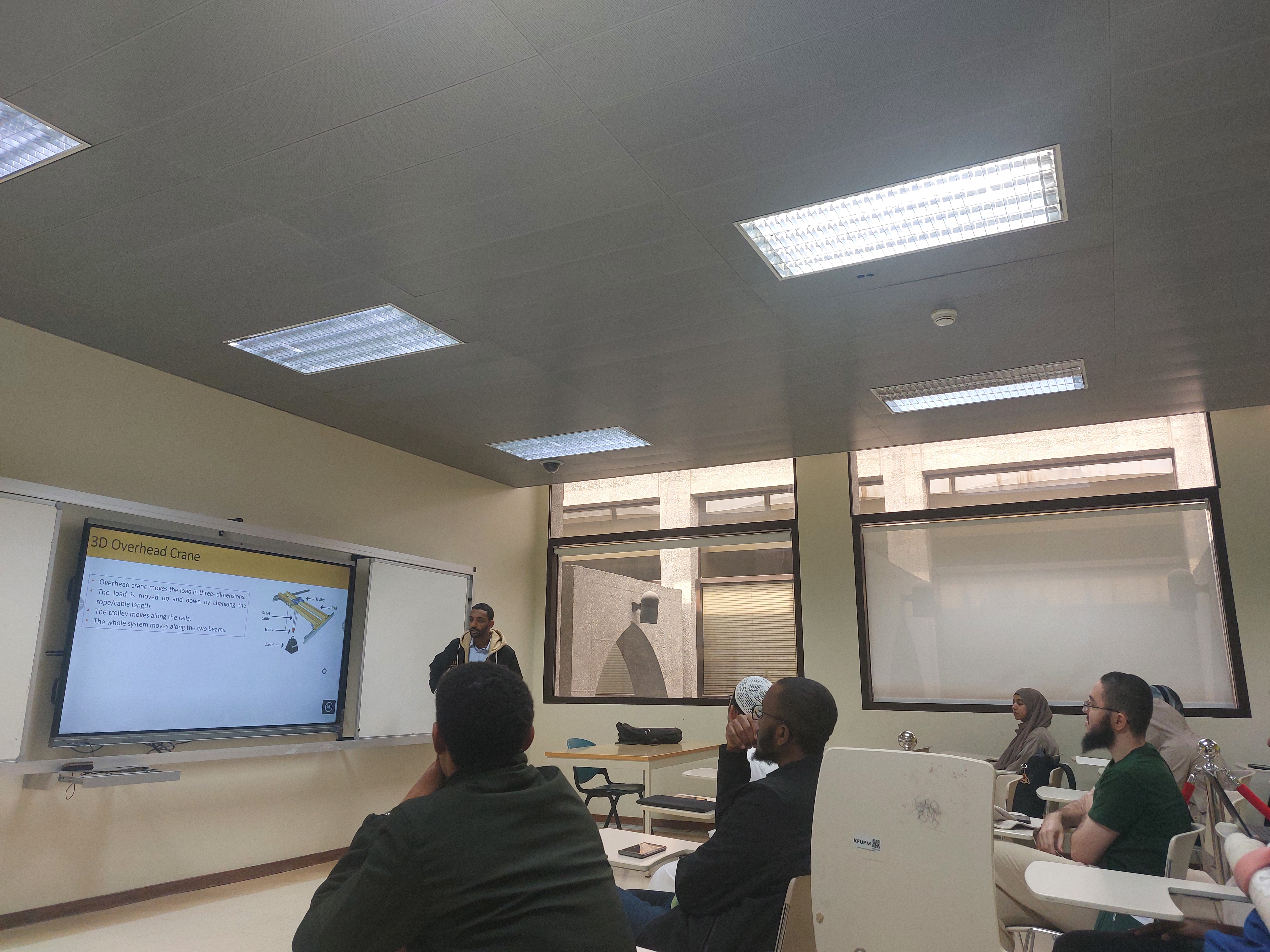 On November 12, 2025, Mr. Ali M. Mustafa—MSc student in Electrical Engineering (Control) at King Fahd University of Petroleum & Minerals (KFUPM)—delivered a seminar titled “Fast and Safe 3D Crane Motion Using I-LQR and Dynamic Path Planning.”